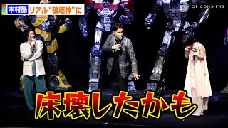 俳優の吉岡里帆、声優の木村昴、木村良平が11日、都内で行われた「トランスフォーマー」シリーズの最新作リアルCG映画『 …